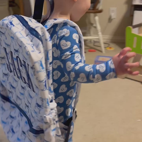 Our best-selling Backpacker is soft, lightweight, and water-resistant, the bag is equipped with 2-way top zipper for easy access with plenty of room inside and a front zip pocket for supplies for the little scholars. It features adjustable padded straps, 2 side water pockets and a convenient top handle that make them easy to carry, and you can toss it into the washer on cold, gentle cycle and line dry !
