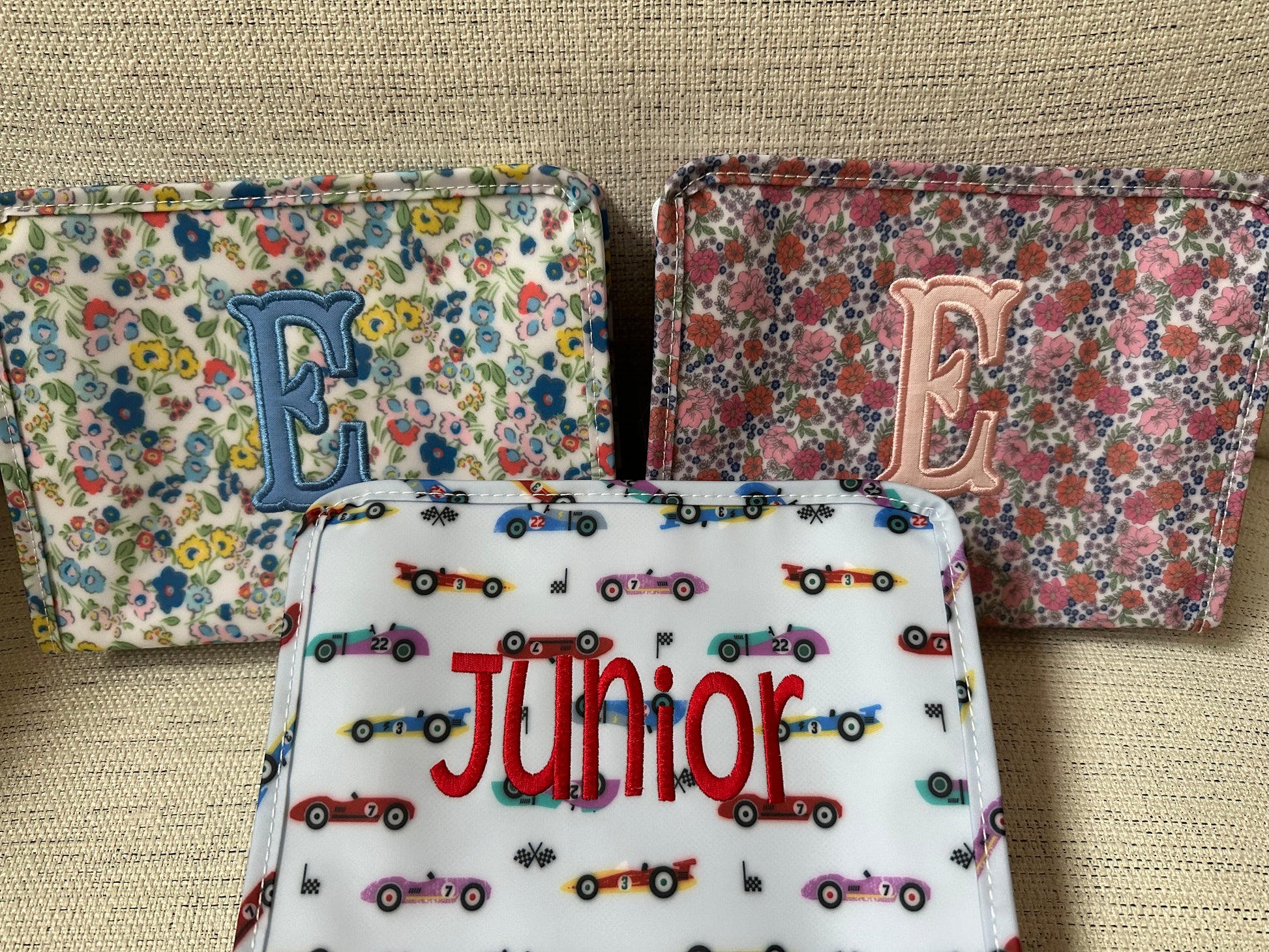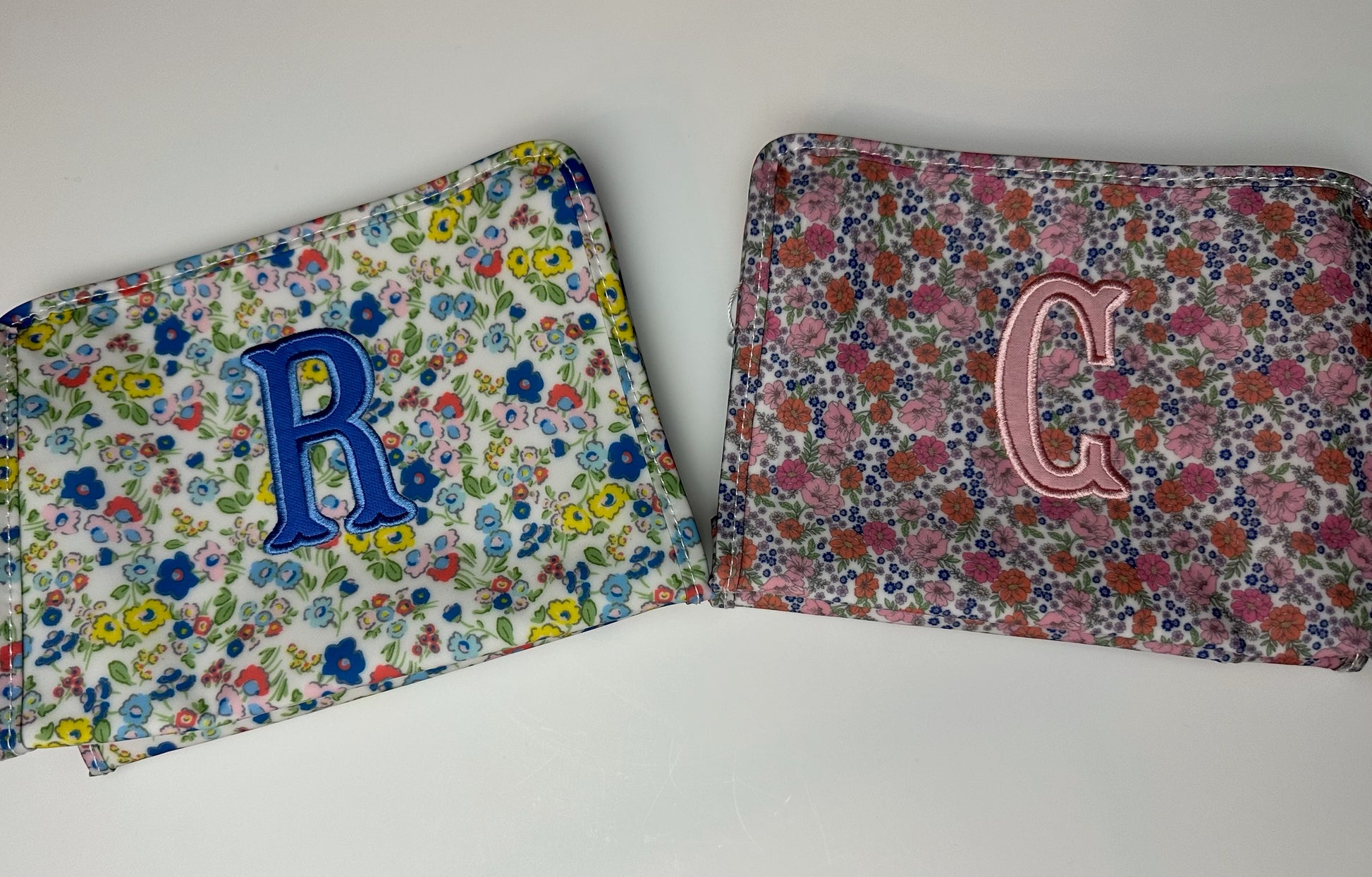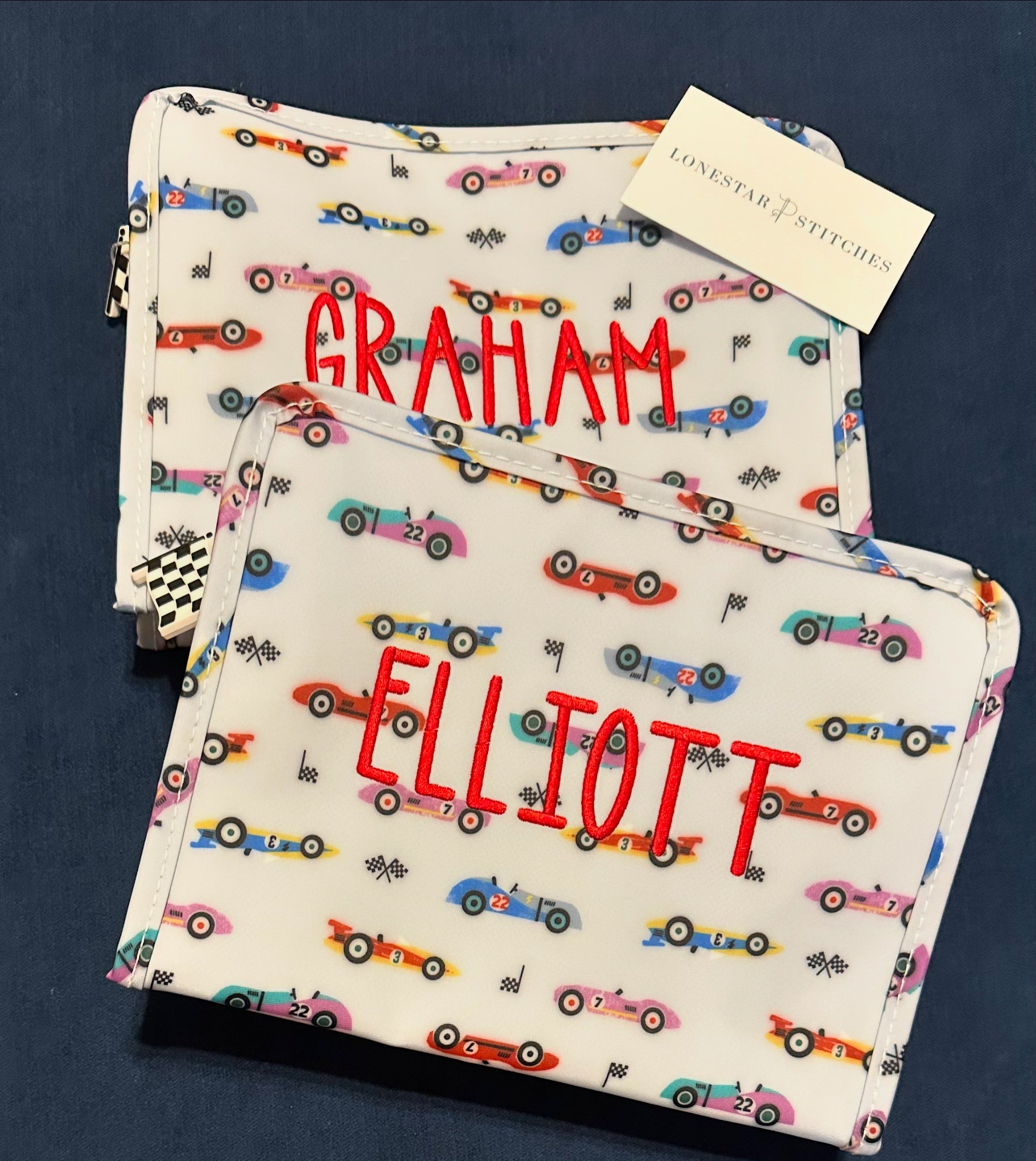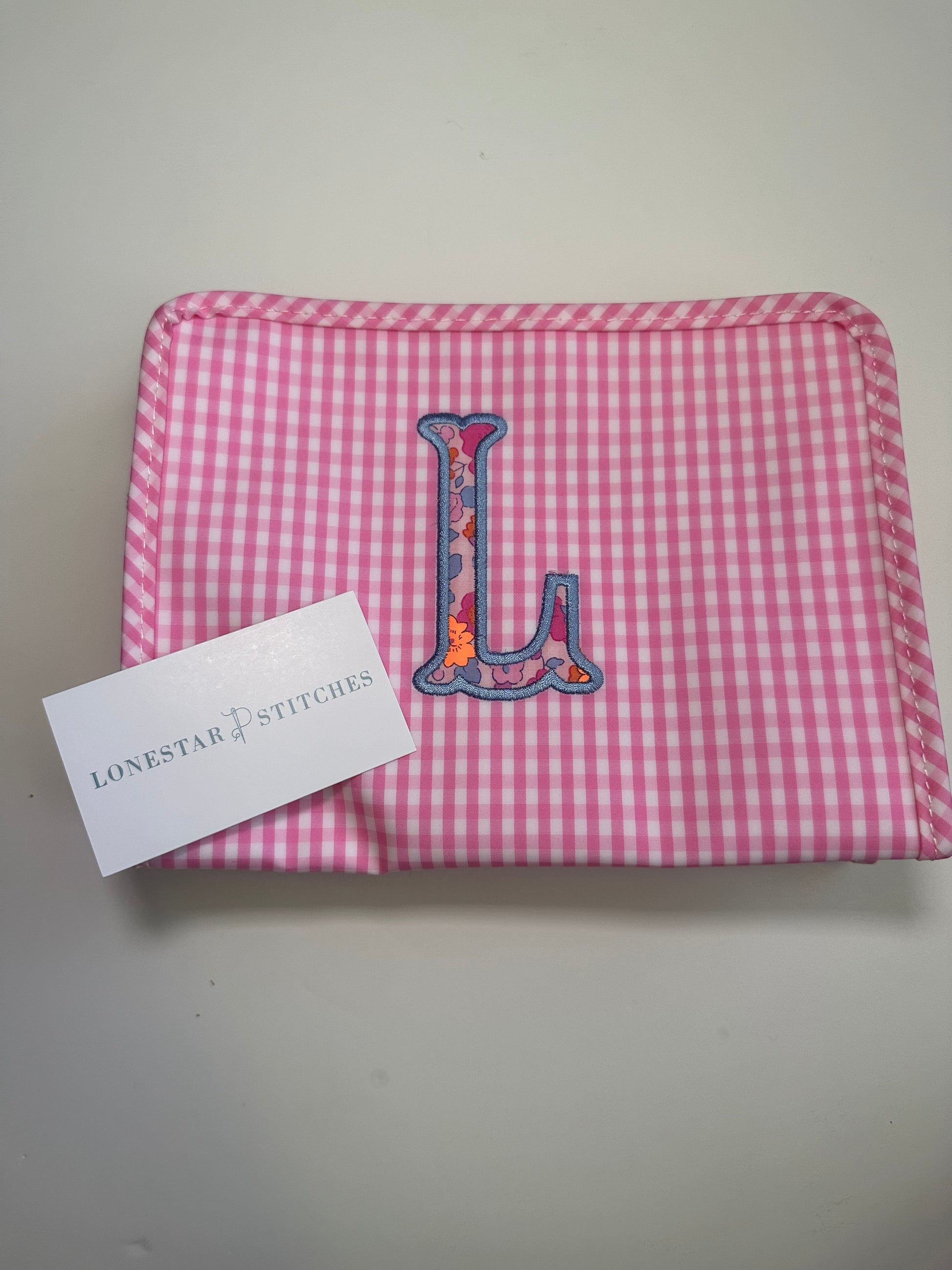 The best-selling Roadies are our BFFs in the pouch world! Roadies are made in a cotton gingham with a thin Eco-friendly matte coating, an inside slip pocket and exterior snap open zip tabs for a wider opening and an easier access. These are perfect for embroidery!